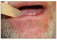 | Above: Notice the subtle ulcer on the left lower lip that after